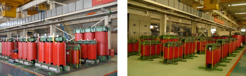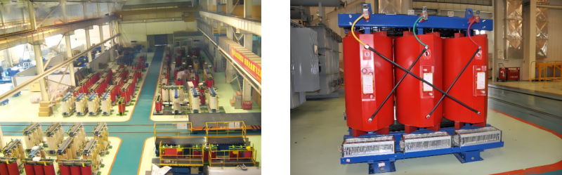 环氧浇注干式配电变压器具有优越的电气性能,绝缘强度高,机械强度好,以及优良的防潮性和防尘性。我公司生产的SCB系列干式变压器满足了国家标准要求的能效等级,属于低损耗节能型变压器。